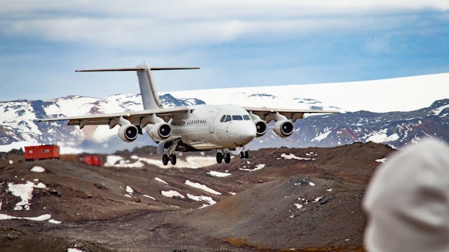 2. Tag: Linienflug in die Antarktis - George Island, auf den Süd-Shetland-Inseln. Beim Verlassen des Flugzeugs atmen Sie zum ersten Mal die klare antarktische Luft ein. Dann wandern Sie 2 km (1,25 Meilen), vorbei an der chilenischen Frei-Station und der russischen Bellingshausen-Station, bis Sie die Küste erreichen und an Bord eines Zodiacs gehen, das Sie zu Ihrem Boutique-Expeditionsschiff bringt.