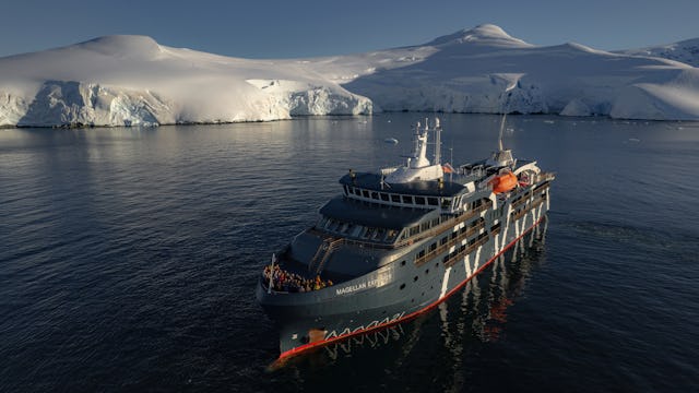 Die Magellan Explorer ist ein neues und modernes Expeditionsschiff, das speziell für die Antarktis-Flugreisen nach den neuesten Spezifikationen des Polar-Codes gebaut wurde. Für die Flug-Kreuzfahrten bietet die Magellan Explorer Platz für 76 Gäste, die in sieben Unterkunftskategorien untergebracht sind, darunter auch Einzelkabinen. Alle Kabinen mit Ausnahme der Bullaugenkabinen haben einen eigenen Balkon. Alle Doppelkabinen außer zwei haben zwei Einzelbetten, die zu einem Kingsize-Bett zusammengestellt werden können. Alle Kabinen verfügen über einen Kleiderschrank, ein individuell regulierbares Heizsystem, eine Sitzecke und ein eigenes Bad mit Dusche und Fußbodenheizung.