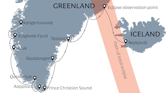 Diese einzigartige Sonnenfinsternis, weit weg von jedem bewohnten Ort, ist ein passender Auftakt unserer großen Expeditionskreuzfahrt von Ost- nach Westgrönland.