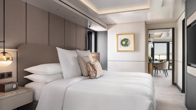 Ihr King-Bett mit luxuriöser Bettwäsche verspricht erholsamen Schlaf, während weiche Frottee-Bademäntel und hochwertige Kosmetikartikel für zusätzlichen Wohlfühlfaktor sorgen. Das stilvolle Badezimmer begeistert mit einem Doppelwaschbecken, einer ebenerdigen Dusche und einem hochmodernen Duschsystem. Ein doppelter Schminkspiegel und ein leistungsstarker Haartrockner runden das exklusive Wohlfühlambiente ab. Für entspannte Momente in Ihrer Suite stehen eine individuell befüllte Minibar sowie eine Espresso-Maschine bereit. Dank dieser luxuriösen Ausstattung wird Ihre Ritz-Carlton Luminara Balkonsuite zum perfekten Refugium auf dem Meer – ein Ort, an dem Sie sich sofort zu Hause fühlen.