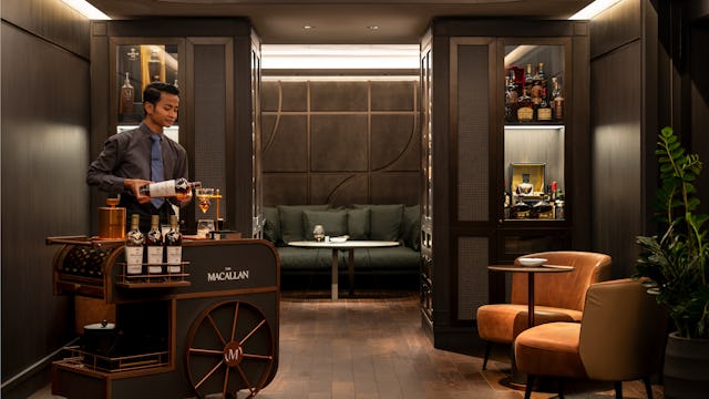 Wer die Ritz-Carlton Luminara innen erkundet, entdeckt außerdem stilvolle Lounges, elegante Freizeitbereiche und ein Ambiente, das bis ins kleinste Detail durchdacht ist. Die Ritz-Carlton Luminara bietet darüber hinaus eine unvergleichliche Abendgestaltung. Im Living Room genießen Gäste Cocktails und Live-Musik oder knüpfen Kontakte mit Gleichgesinnten bei Gesellschaftsspielen. Wer bis spät in die Nacht feiern möchte, findet in der Observation Lounge eine stilvolle Kulisse mit Live-Musik und DJ-Sets. Zigarrenliebhaber können den Abend hingegen im Humidor mit erlesenen Drinks ausklingen lassen.