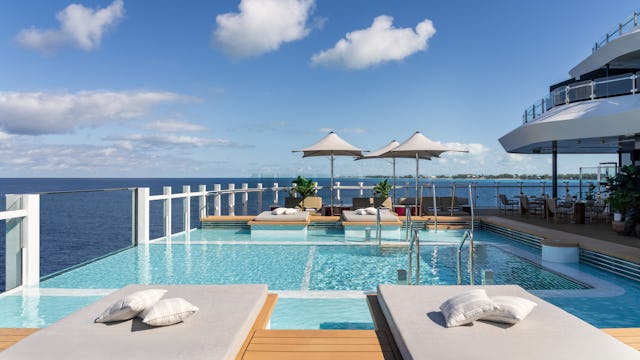 Auf Deck 10 befindet sich der großzügige Main Pool mit Panoramablick, Sonnenliegen und einer Poolbar – ideal für gesellige Veranstaltungen unter freiem Himmel. Die Observation Terrace auf Deck 9 lädt mit komfortablen Liegen und Sofas zum Sonnenbaden oder geselligen Beisammensein ein, während Sie den weiten Meerblick genießen.