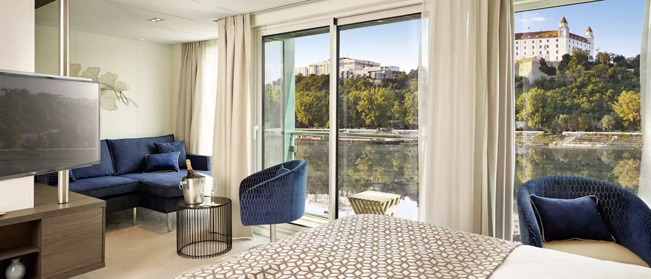 ✓ Luxuriöse Unterkunft in einer Außenkabine mit Flussblick oder in der Suite mit begehbarem Balkon