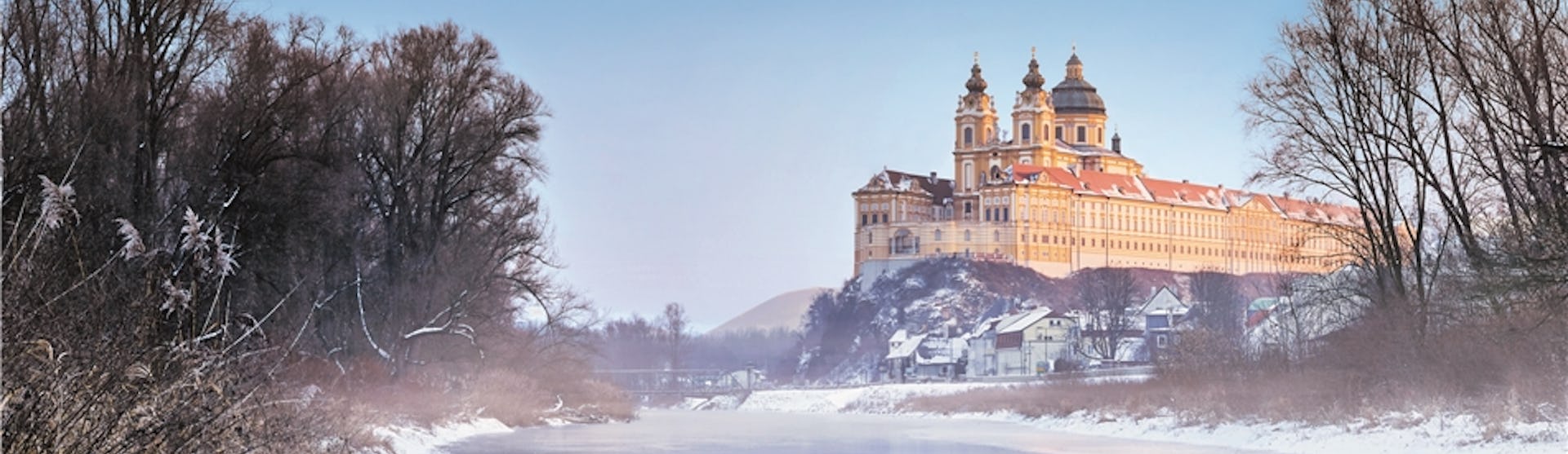 6. Tag - Emmersdorf, Österreich - Den Vormittag verbringen Sie an Bord, wo sich Ihnen ein beeindruckender Ausblick auf die vorbeiziehende Winterlandschaft offenbart, während Ihr Schiff flussaufwärts in die UNESCO-geschützte Kulturlandschaft der Wachau fährt. Gegen Mittag treffen Sie in Melk/Emmersdorf ein: Von hier aus haben Sie die Möglichkeit, an einem Ausflug* zum Stift Melk teilzunehmen. Das traumhaft schöne Barockkloster der Benediktiner thront majestätisch auf einem Felsen über der Stadt Melk. Vor allem die Stiftskirche ist mit viel Blattgold und Malereien unglaublich prachtvoll und beeindruckend. Sehr eindrucksvoll ist auch das Benediktinerstift Göttweig am östlichen Rand des Donautales der Wachau. 1083 gegründet, wurde Göttweig 1094 den Benediktinern übergeben und zählt heute zu den ältesten Klöstern Österreichs. /F/M/A)