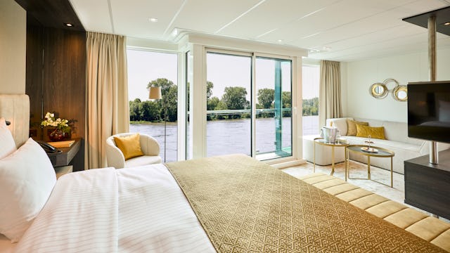 *Die Liegestellen in den jeweiligen Häfen werden von der lokalen Hafenbehörde vergeben. Regulär legen Flussschiffe stromaufwärts an. Mitunter kann es vorkommen, dass die Schiffe aufgrund der Anlegebestimmungen oder dem hohen Schiffsaufkommen nebeneinander anlegen müssen. Dies erfordert, dass Gäste ein anderes Schiff durchqueren müssen, um zum eigenen Schiff oder an die Anlegestelle zu gelangen. Dies ist ein Standardverfahren in der Flusskreuzfahrt und liegt außerhalb unserer Kontrolle. Bitte beachten Sie, dass in bestimmten Häfen der Ausblick aus der Kabine teilweise versperrt sein kann.