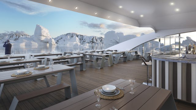 Wenn der Abend hereinbricht, verwöhnt Sie die À-la-carte-Küche mit raffinierten Gerichten, die von erfahrenen Köchen mit hochwertigen, regionalen Zutaten gezaubert werden. Dabei sind die Speisen nicht nur optisch ein Augenschmaus, sondern gehen auch auf unterschiedliche Ernährungsgewohnheiten ein, sodass sich jeder Gast von den Aromen verzaubern lassen kann. Wenn das Wetter mitspielt, steigt die Outdoor BBQ Area zum lebendigen Treffpunkt auf dem Oberdeck auf: Grillen unter freiem Himmel, begleitet von frischer Luft, grandiosen Panoramen und geselliger Stimmung. Anschließend lädt die gut sortierte Bar dazu ein, den Tag bei einem Glas chilenischen Wein oder einem handgemachten Cocktail entspannt Revue passieren zu lassen.
