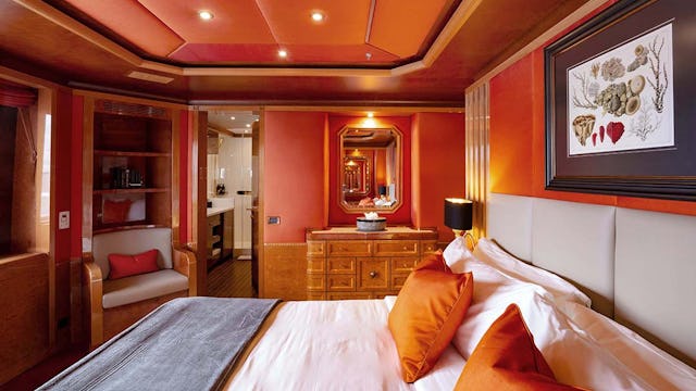 Die Owner’s Suite der Aqua Mare ist ein Palast auf See: Mit rund 80 Quadratmetern bietet sie mehr Raum als jede andere Unterkunft im Galapagos-Archipel und definiert Luxus neu. Der großzügige Wohn- und Schlafbereich ist elegant eingerichtet und lädt zum Verweilen ein, während große Panoramafenster faszinierende Ausblicke auf Meer und Inselwelt freigeben. Ein besonders stilvolles Bad mit hochwertigen Oberflächen und separater Dusche sorgt für spa-ähnlichen Komfort. Exklusive Extras wie ein persönlicher Service auf Wunsch und erstklassige Pflegeprodukte unterstreichen das Premium-Erlebnis. Diese Suite ist perfekt für Gäste, die höchsten Komfort, Privatsphäre und Raum zum Entspannen suchen.