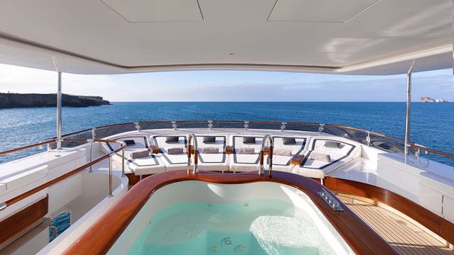 Die Aqua Mare erstreckt sich über vier elegant gestaltete Decks, die nahtlos miteinander verbunden sind und Raum für unterschiedliche Inszenierungen von Luxus bieten. Ob auf dem weitläufigen Sonnendeck, wo ein Outdoor-Barbecue, Sonnenliegen und ein sechs-Personen-Jacuzzi zum entspannten Verweilen einladen, oder auf dem Upper Deck mit Panthera-Lounge und Lobby-Bar – hier verschmilzt Komfort mit spektakulären Aussichten auf die Galapagos-Kulisse. Das Main Deck bietet eine Mischung aus stilvoller Innen-Panoramalounge und einladenden Außenbereichen mit Grill- und Essplätzen, ideal für geselliges Zusammensein unter dem Sternenhimmel. Auf dem Lower Deck befindet sich der einzigartige Beach Club, direkt auf Wasserhöhe, der als Sprungbrett zu Aktivitäten wie Schnorcheln, Kajakfahren oder einfach als Ort der Ruhe dient. Jede Ebene wurde bewusst gestaltet, um ein Gefühl von Weite, Licht und Verbindung zur Natur zu vermitteln. Die abwechslungsreichen Decksbereiche schaffen Raum für aktive Erkundung, gesellige Momente oder puren Rückzug. Stilvolle Sitzlandschaften, Sonnenschutz-Optionen und fein abgestimmte Materialsprache tragen zur Wohlfühlatmosphäre bei. Damit wird jede Stunde an Bord zu einem Erlebnis für sich – vom Morgensonnenaufgang über den Äquator bis zum Sundowner im Jacuzzi.