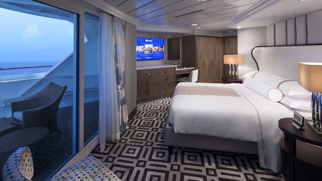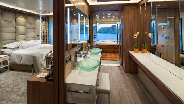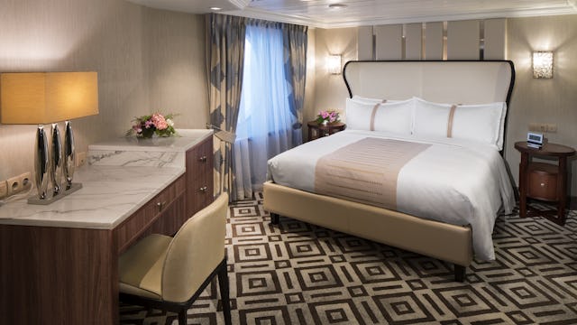 Die Club Continent Suite Stateroom verfügt über ca. 24,7 m² Wohnfläche und eine ca. 5,6 m² Veranda mit atemberaubendem Meerblick. Inspiriert von Natur zum zeitgemäßen maritimen Design verbinden helle Holzakzente, organische Stoffe und eine Farbpalette aus Sand- und Blautönen. Der Wohnbereich bietet zwei Betten zu Queen-Size vereinbar und ein elegantes Lounge-Sofa. Bodentiefe Schiebetüren öffnen zum Lichtdurchfluten und lassen die Brise herein. Im Bad erwarten Sie separate Dusche oder Badewanne, Marmoroptik und hochwertige Pflegeprodukte.