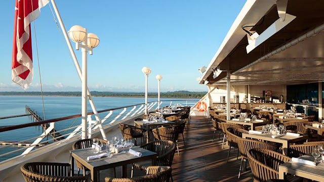 Aqualina serviert authentische mediterrane Spezialitäten, von hausgemachter Pasta bis zu verführerischen Desserts, und besticht durch sein schickes, lichtdurchflutetes Ambiente. Das Prime C vereint Steak- und Seafood-Klassiker in edlem Mahagoni-Interieur, das mit luxuriöser Atmosphäre und hervorragender Servicequalität überzeugt. Und im Discoveries Restaurant erleben Gäste den Destination Immersion®-Ansatz mit Buffet-Stationen, regional inspirierten Gerichten und abwechslungsreichen Dinner-Menüs. Der Hauptspeiseraum auf Deck 5 bietet elegante Sitzgelegenheiten und offene Raumgestaltung, ideal für gesellige Dinner-Runden.