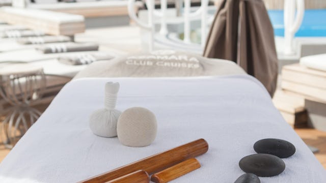 Im Sanctum Spa, einem wahren Rückzugsort auf Deck 9, genießen Sie eine breite Palette an restorativen Anwendungen von Jadestein- bis hin zu Deep-Tissue-Massagen. Die angrenzende Sanctum Terrace mit Thalassotherapie-Pool bietet Ihnen atemberaubende Ausblicke und exklusive Ruhebereiche, die Suite-Gästen kostenfrei zur Verfügung stehen. Für aktive Gäste bietet das Fitness-Center geräumige Trainingsbereiche mit Cardiogeräten, Freihanteln und Platz für Yoga- sowie Pilates-Kurse – alles mit Meerblick und persönlicher Betreuung.
