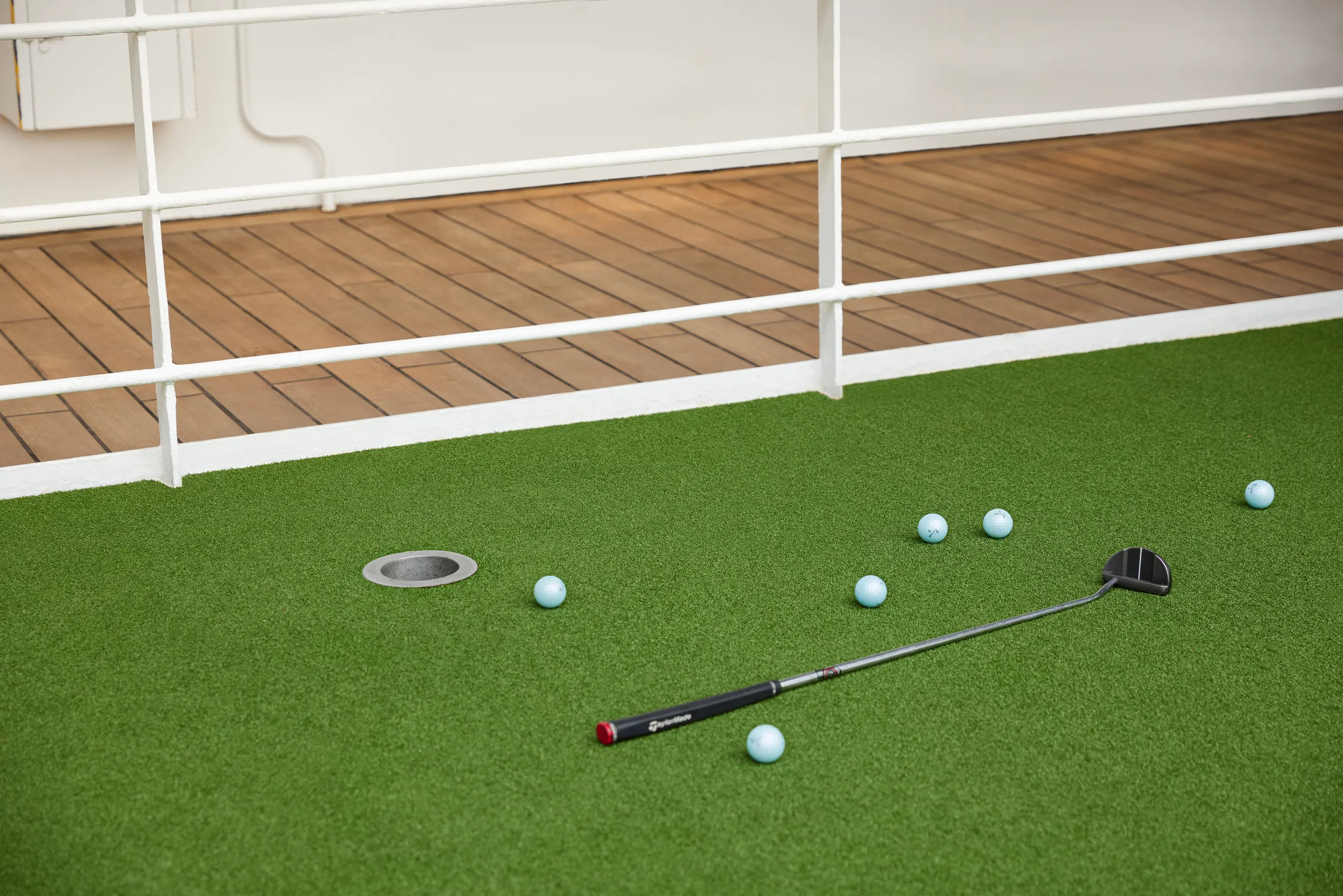 Weitläufige Teakdecks, sanfte Meeresbrisen und der Duft frischer Luft – die Crystal Serenity bietet ihren Gästen ein Bordleben voller Leichtigkeit. Im Mittelpunkt steht der Seahorse Pool, umgeben von stilvollen Sonnenliegen, gemütlichen Sitzbereichen und der perfekten Kulisse für einen entspannten Nachmittag mit einem kühlen Drink. Zwei Wimbledon Courts laden zu einer Partie Paddle Tennis oder Pickleball ein, während Golffreunde an den Golf-Driving-Nets unter Anleitung eines Golfprofis ihr Spiel verbessern können.