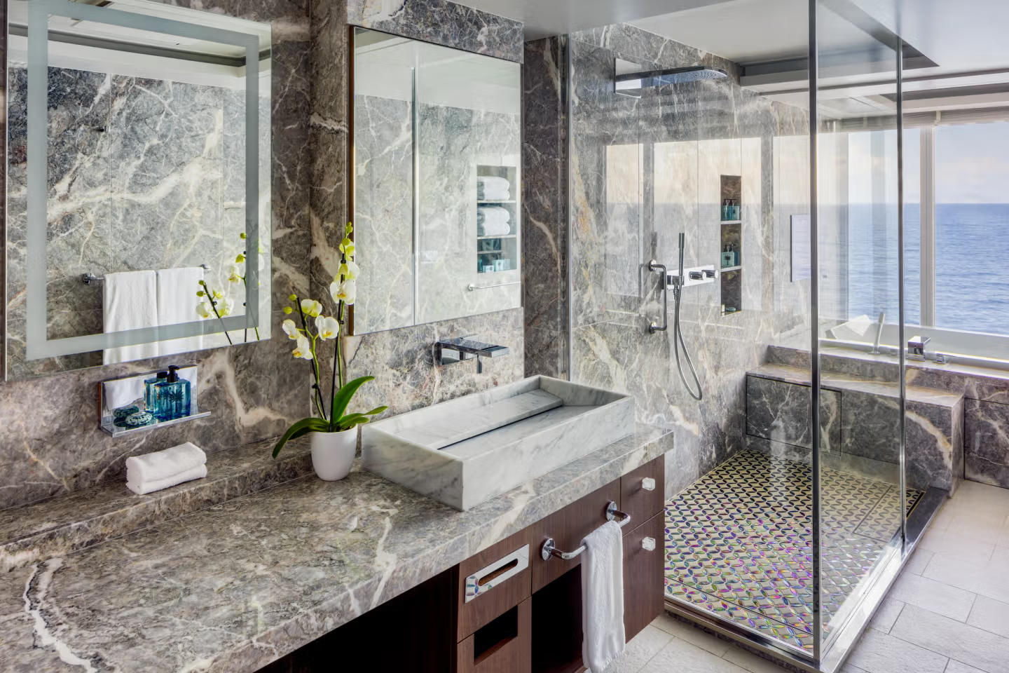 Ob großzügige Penthouse Suite oder stilvolle Veranda Suite – alle Kategorien bieten ein außergewöhnliches Maß an Privatsphäre, persönlichen Butler-Service und viele liebevolle Details, die den Aufenthalt unvergesslich machen. Exklusive Marmorbäder, private Balkone und sorgfältig kuratierte Annehmlichkeiten verwandeln jede Suite in ein Zuhause auf See.