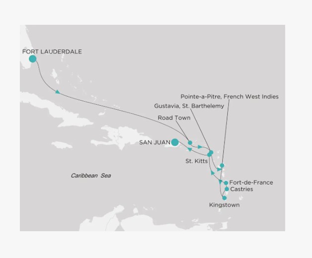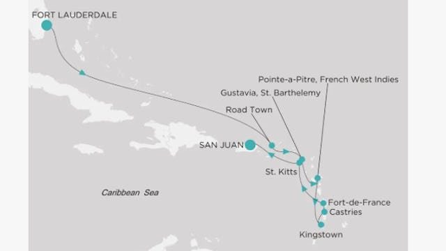 Kleine, aber perfekt geformte Inseln sind unsere Ziele auf dieser Reise durch die Karibik. Sie verlassen das geschäftige Fort Lauderdale und tauchen ein in die entspannte Atmosphäre, bevor Tortola auf den Britischen Jungferninseln am Horizont erscheint. Hier verschmilzt weißer Sand mit blauem Meer – ein Ort, der wegen seiner schillernden Unterwasserwelt bei Schnorchlern und Tauchern sehr beliebt ist. Der nächster Halt ist das französischsprachige St. Barts, wo Sie in den glamourösen Boutiquen von Gustavia sehen und gesehen werden. Das französische Thema setzt sich in Pointe-à-Pitre auf Guadeloupe fort, wo Sie im Museum der Stadt das kreolische Leben kennenlernen. In Kingstown auf St. Vincent zieht einer der ältesten botanischen Gärten der westlichen Hemisphäre unsere Aufmerksamkeit auf sich, während in Castries auf St. Lucia die moderne Kathedrale mit ihren farbenfrohen Wandmalereien schwarzer Heiliger ein Muss ist. Als Nächstes steht Fort-de-France auf Martinique auf dem Programm, wo es Märkte zum Stöbern und Sehenswürdigkeiten wie eine Statue von Napoleons Josephine gibt. Basseterre auf St. Kitts ist das Tor zum Brimstone Fort National Park, einem UNESCO-Weltkulturerbe, und unsere vorletzte Station, bevor Sie in San Juan ankommen.