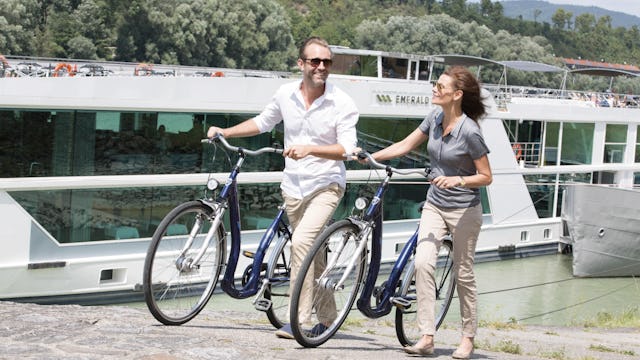 Und auch für Ihre körperliche und geistige Erholung bietet die Emerald Star zahlreiche Optionen. Im Wellness-Center können Sie sich bei entspannenden Massagen und Behandlungen verwöhnen lassen oder im kompakten Fitnessstudio an modernen Kardiogeräten und freien Gewichten aktiv bleiben. Um Ihre Fitness zu fördern, nehmen Sie an Yoga-, Pilates- oder Wassergymnastikkursen teil und saugen Sie dabei die beruhigende Aussicht in sich auf. Mit EmeraldACTIVE können Sie während Ihrer Flusskreuzfahrt an einer Reihe von interessanten Ausflügen teilnehmen – von geführten Wanderungen bis hin zu Kanufahrten oder Radtouren. Besuchen Sie UNESCO-Welterbestätten und lassen Sie sich von erfahrenen Reiseleitern durch beeindruckende Landschaften führen.