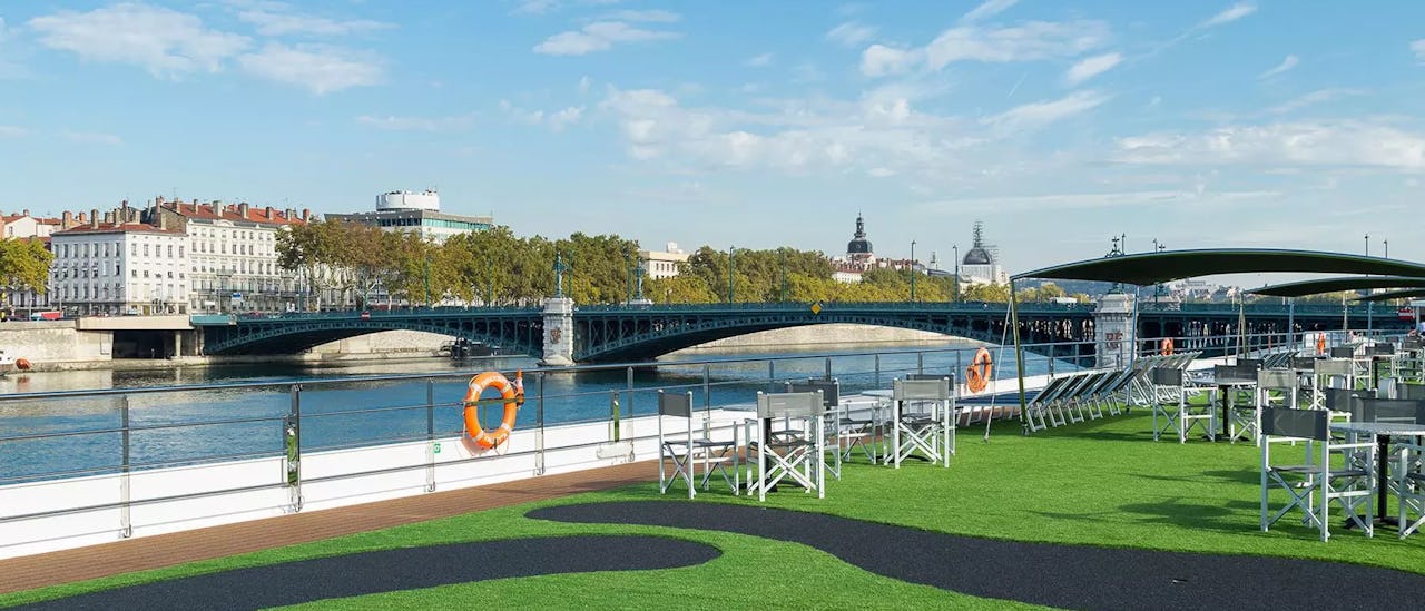 Auf dem Sonnendeck erwarten Sie Deckspiele, ein Wanderweg und ein Platz zum Entspannen und Genießen der Aussicht. Oder stoßen Sie mit neuen Freunden an und entspannen Sie sich, während Sie Europas atemberaubende Naturschönheiten vorbeiziehen sehen.