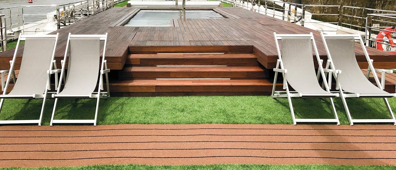 Auf dem Sonnendeck erwarten Sie Deckspiele, ein Rundweg und ein Platz zum Entspannen und Genießen der Aussicht. Oder stoßen Sie mit neuen Freunden an und entspannen Sie sich, während Sie die atemberaubende Natur Europas an sich vorbeiziehen lassen.