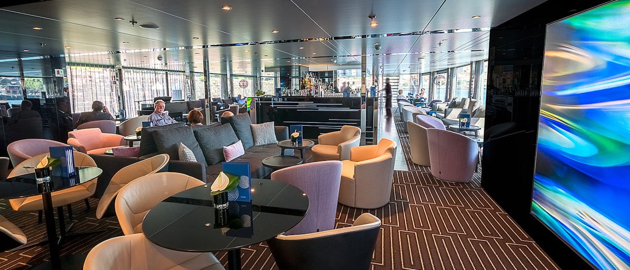 Das Reflections Restaurant auf dem Vista Deck ist der Hauptspeisesaal. Hier können Sie Frühstück, Mittagsbuffets und Abendessen à la carte genießen. Alternativ ist die Horizon Lounge ideal für ein Selbstbedienungs-Frühstück oder ein leichtes Mittagessen. An sonnigen Tagen können Sie auf der Terrasse sitzen, einem Open-Air-Bereich an der Vorderseite des Schiffes, der einen fantastischen Blick auf die vorbeiziehenden Landschaften bietet.