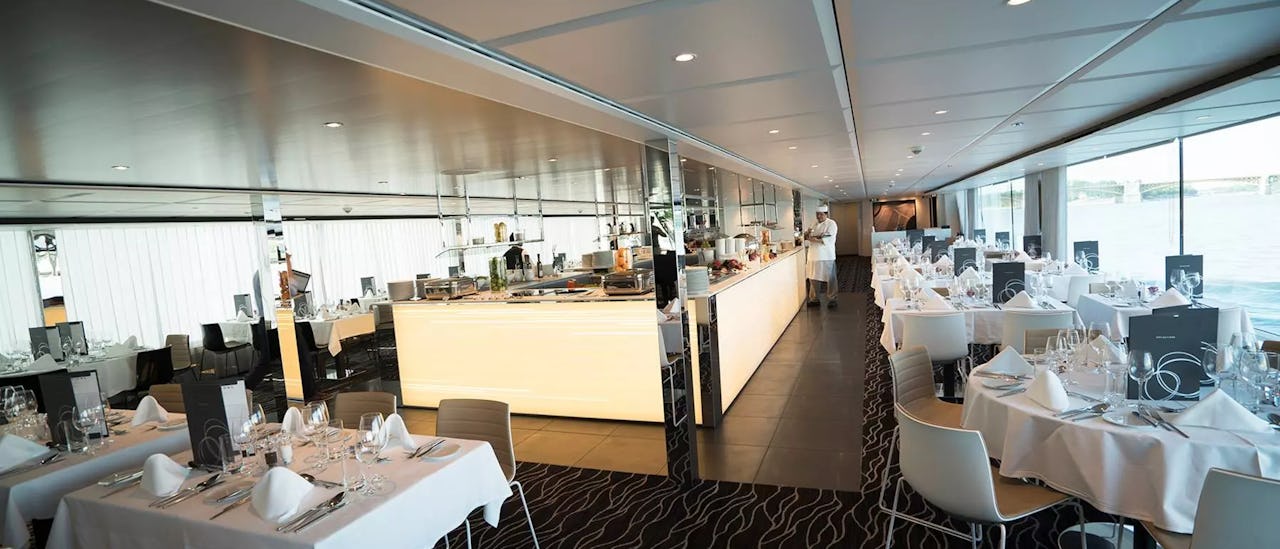 Das Reflections Restaurant auf dem Vista Deck ist der Hauptspeisesaal. Hier können Sie Frühstück, Mittagsbuffets und Abendessen à la carte genießen. Alternativ ist die Horizon Lounge ideal für ein Selbstbedienungs-Frühstück oder ein leichtes Mittagessen. An sonnigen Tagen können Sie auf der Terrasse sitzen, einem Open-Air-Bereich an der Vorderseite des Schiffes, der einen fantastischen Blick auf die vorbeiziehenden Landschaften bietet.