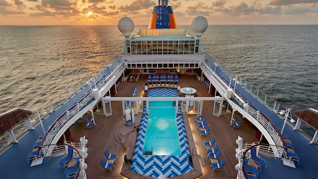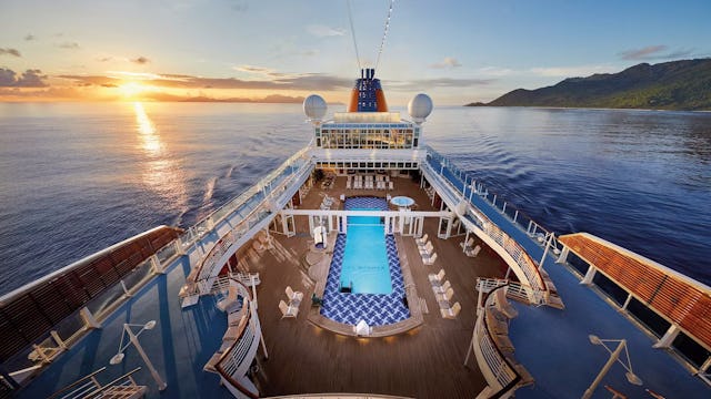 Morgens ein paar Bahnen im 15 m langen Meerwasserpool schwimmen, nachmittags die Sonne genießen, am Lido Deck endlich Zeit finden, das eine oder andere Buch zu lesen.