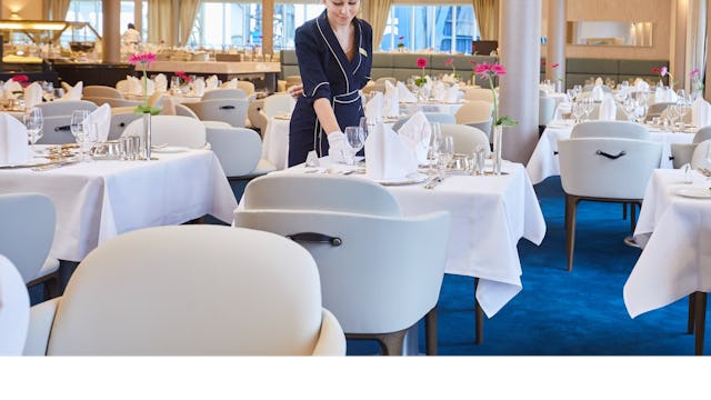 Diese sind zudem die richtige Wahl für Sie, wenn Sie Wert auf eine feste Tischplatzreservierung in allen Restaurants des Schiffs legen. Wer sich für eine der Penthouse Deluxe Suiten oder eine der Penthouse Grand Suiten entscheidet, wird zusätzlich von einem Butler umsorgt, der sich unter anderen um das Aus- und Einpacken Ihres Gepäcks kümmert, Ihre Kleidung aufbügelt oder Ihnen Speisen und Getränke in Ihrer Suite serviert.