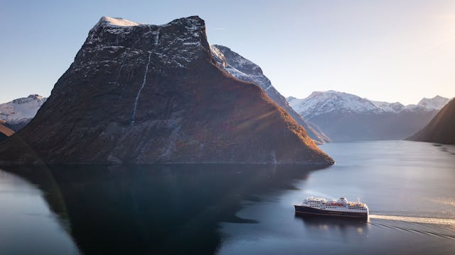 Reines Wasser – Frische Luft – Unberührte Landschaft – Stille... In den norwegischen Fjorden finden Sie all das. Mit Havila Voyages gehen Sie auf die umweltfreundlichste Reise entlang der norwegischen Küste. Die vier Küstenkreuzfahrtschiffe von Havila Voyages sind mit den größten Batteriepaketen ausgestattet, die je auf einem Passagierschiff installiert wurden, was bedeutet, dass die Flotte vier Stunden am Stück ohne Emissionen fahren können. Auf diese Weise können Sie empfindliche Ökosysteme wie den zum Weltnaturerbe gehörenden Geirangerfjord besuchen, ohne sich Gedanken über Umweltprobleme machen zu müssen.