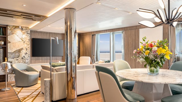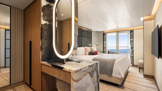 In den drei Owner’s Suiten zeigt die Vista, was auf See in puncto Eleganz und Raumgefühl möglich ist. Zwischen 205 und 220 m² groß, erstrecken sie sich über die komplette Breite des Schiffs und bieten Ihnen zwei einladende Teakholz-Verandas, raumhohe Fenster, ein Foyer mit Esstisch sowie separate Wohn- und Schlafbereiche. Elegante Vertäfelungen, nautische Farben und viel Licht sorgen für ein harmonisches, edles Ambiente. Neben dem großzügigen Schlafbereich stehen Ihnen ein begehbares Ankleidezimmer, ein Bad mit opulenter Badewanne und Meerblick, eine private Cocktailbar sowie ein großzügiger Wohnbereich zur Verfügung. Diese drei Suiten sind perfekt für Sie, wenn Sie auch auf See keine Kompromisse bei Ihrem Domizil eingehen möchten.