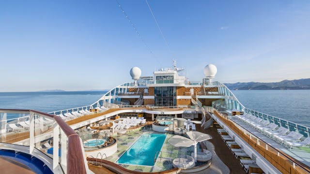 Die Vista erstreckt sich über insgesamt 15 Decks, von denen 11 den Gästen offenstehen. Auf Deck 12 erwartet Sie das stilvolle Freiluft-Pooldeck der Oceania Vista. Dort finden Sie eine Poollandschaft, bestehend aus einem Pool und zwei Whirlpools, die von eleganten Liegestühlen, weichen Lounge-Sofas und privaten Cabanas umrahmt werden.