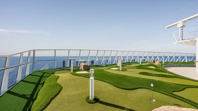 Ob in der Sonne oder im Schatten, auf zwei Ebenen finden Sie reichlich Platz zum Seele-baumeln-Lassen, Lesen und Genießen. Die Decks 15 und 16 widmen sich hingegen ganz der aktiven Erholung mit Wellness-, Fitness- und Sportangeboten unter freiem Himmel.