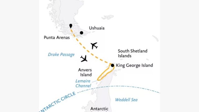 Fliegen Sie in beide Richtungen über die 800 km lange Drake-Passage – die schnellste Route zur und von der Antarktis – und erleben Sie das Beste des 7. Kontinents auf unserer 8-tägigen Antarktis-Express-Tour: Fly the Drake. Genießen Sie einen komfortablen, zeitsparenden dreistündigen Flug von Punta Arenas, Chile, und gehen Sie nach der Landung auf King George Island an Bord Ihres Schiffes. Die nächste Woche verbringen Sie dann damit, die raue Polarlandschaft zu erkunden, einzigartige Wildtiere zu beobachten, unzählige Pinguine und Robben zu fotografieren – und den unvergesslichen Nervenkitzel zu erleben, zum ersten Mal auf dem antarktischen Kontinent zu stehen.