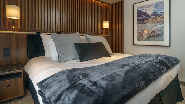 Wenn draußen das Eis knirscht und der eisige Wind über das Meer streicht, erwartet Sie an Bord ein Rückzugsort, der Wärme und Geborgenheit ausstrahlt. Die 102 stilvoll gestalteten Suiten – verteilt auf neun Kategorien – bieten Ihnen reichlich Platz, um nach Ihren Landgängen zur Ruhe zu kommen. Eine Dusche und Fußbodenheizung im Bad, flauschige Bademäntel, hochwertige Pflegeprodukte und ein gemütliches Bett sorgen für Behaglichkeit nach einem Tag in der Kälte. Ein Fernseher, Kühlschrank sowie ein Arbeitstisch und Kleiderschrank ergänzen die durchdachte Ausstattung. Und der leuchtend gelbe Parka? Der geht mit Ihnen auf Expedition, und als Erinnerung mit nach Hause.
