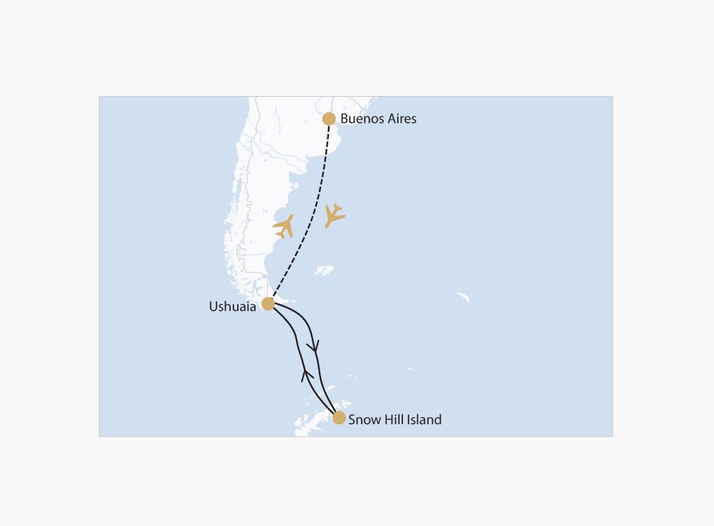 Nehmen Sie die schnellste Route in die Antarktis – einen dreistündigen Flug – und genießen Sie Ihren ersten Blick auf den 7. Kontinent aus der Luft! Eine einzigartige Einführung in die weiten und dramatischen Landschaften, die eine der letzten unberührten Regionen der Welt darstellt. Setzen Sie Ihre Reise auf einem Schiff fort, wo ein Abenteuer jenseits Ihrer kühnsten Vorstellungen auf Sie wartet. Später kehren Sie durch den legendärsten – und aufregendsten – Wasserweg der Welt zurück, während Sie dem Pfad historischer Entdecker über die berüchtigte Drake-Passage folgen. Erwarten Sie das Unerwartete und werden Sie mit einzigartiger Tierwelt und natürlichen Attraktionen belohnt, wobei jeder Höhepunkt den letzten übertrifft.