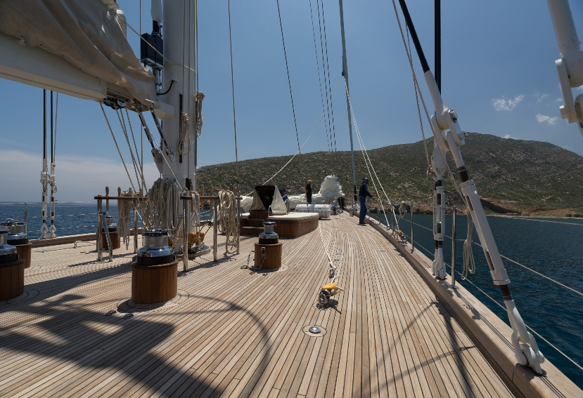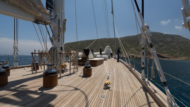 Eine zehnköpfige Crew – bestehend aus Kapitän, Koch, Ingenieur, Deckscrew sowie Stewards und Stewardessen – sorgt für das Wohl der bis zu 26 Gäste. Mit Liebe zum Detail, herzlicher Gastfreundschaft und einem Gespür für die besonderen Momente auf See entsteht eine Atmosphäre, in der man sich vom ersten Augenblick an willkommen fühlt. Ob beim Frühstück an Deck, beim Sundowner unter Segeln oder beim leisen Plätschern des Meeres in der Nacht – jede Stunde an Bord der RHEA ist eine Einladung zum Innehalten.