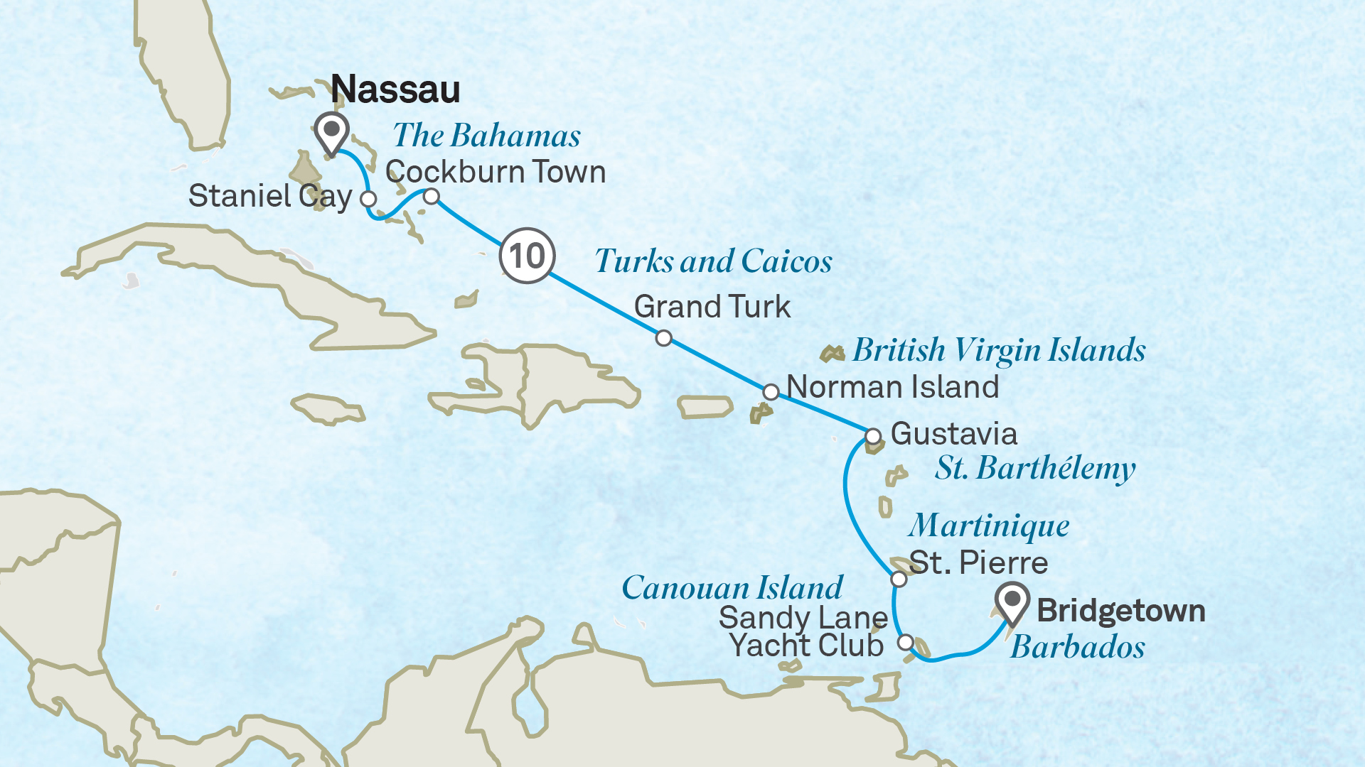 Diese kuratierte Discovery Voyage führt Sie zu einigen der exklusivsten und unberührtesten Ziele der Karibik. Beginnen Sie auf den Bahamas, wo kristallklares Wasser und abgelegene Strände den Ton für eine unvergessliche Reise setzen. Entdecken Sie die unberührte Schönheit von Staniel Cay und den historischen Charme von San Salvador, bevor Sie zu den sonnenverwöhnten Ufern der Turks- und Caicosinseln segeln. Fahren Sie auf die Britischen Jungferninseln und entdecken Sie die legendären Höhlen von Norman Island, und erleben Sie anschließend den mühelosen Glamour von St. Barts mit seinen Designer-Boutiquen und erstklassigen Restaurants. Entspannen Sie sich im entspannten Luxus der Insel Canouan, bevor Sie Ihre Reise im historischen Herzen von Barbados beenden. Mit der Zeit, die ultra-luxuriösen Annehmlichkeiten von Scenic Eclipse zu genießen – von erstklassigem Essen bis hin zu immersiven Discovery-Ausflügen – ist dies ein karibisches Erlebnis wie kein anderes.