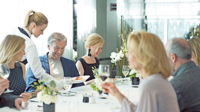 An Bord haben Sie eine große Auswahl an Restaurants; das ungezwungene, ganztägig geöffnete River Café, die Intimität des italienischen Restaurants Portobellos, die Eleganz des Crystal Dining Restaurants, die englische Tradition des High Tea auf der River View Terrace und das exklusive Table La Rive für Diamond Deck-, Junior- und Royal Suite-Gäste.