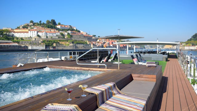 Genießen Sie ein gutes Buch, plaudern Sie mit Freunden und beobachten Sie die bezaubernde Landschaft vom Sonnendeck aus. Die Panorama-Lounge lädt ein, einen Drink bei einer wunderschönen Aussicht zu genießen und mit einer Auswahl an pittoresken Ausflügen nach freier Wahl fühlen Sie sich immer mit den wunderbaren Reisezielen Europas verbunden .