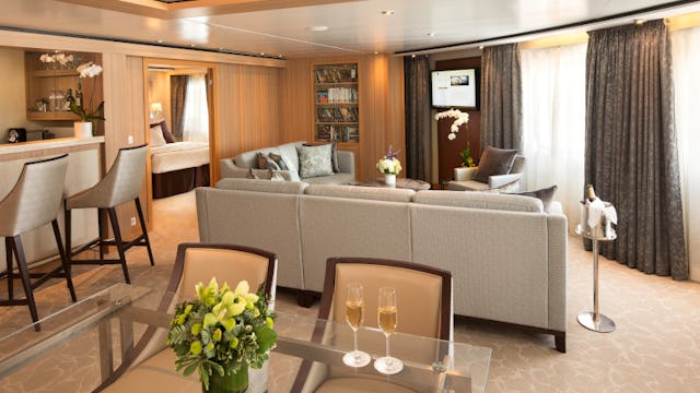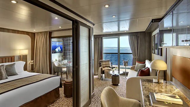Sobald sich die Türen zu Ihrer Suite öffnen, beginnt Ihre persönliche Auszeit auf See. 33 m² voller Ruhe, Eleganz und durchdachter Details schaffen einen Rückzugsort, der ganz Ihnen gehört. Während draußen das Meer vorbeizieht, genießen Sie drinnen den Komfort eines abtrennbaren Wohn- und Schlafbereichs. Das großzügige Marmorbadezimmer macht jeden Augenblick zum Spa-Moment, begleitet von hochwertigen Pflegeprodukten. Die nach Wunsch befüllte Minibar sorgt für genussvolle Momente, während ein Swarovski-Fernglas spektakuläre Ausblicke auf Meer, Küsten und Tierwelt ermöglicht. Für Unterhaltung und Information stehen Ihnen die PressReader®-App mit Ihrer Lieblingslektüre sowie ein interaktives System mit Filmen und Musik zur Verfügung. Und wenn Sie mit Familie oder Freunden reisen, lassen sich ausgewählte Veranda Suiten miteinander verbinden.