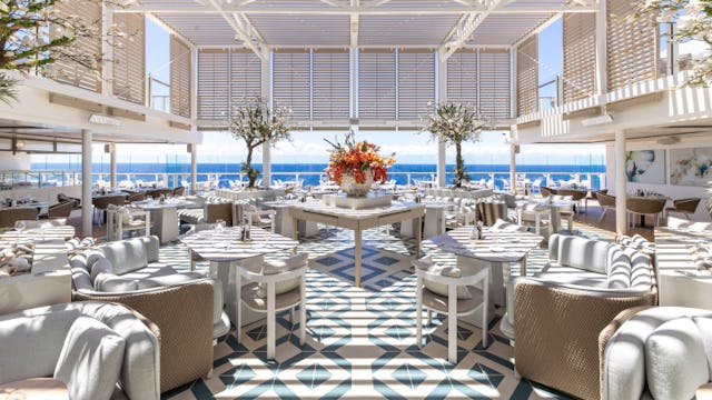 Genießen Sie den Blick auf den Ozean und entspannen Sie sich auf den Liegestühlen auf dem Deck oder lassen Sie sich im Zagara Beauty Spa behandeln.
