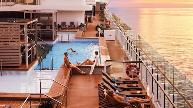 Die Silver Nova setzt auch bei der Gestaltung der Decks auf gewohnte Eleganz und Luxus. Auf insgesamt 11 Decks finden Sie alles, was Ihre Reise unvergesslich macht. Die Decks 6 bis 9 sind ausschließlich den Kabinen vorbehalten, während die Decks 3 bis 5 mit den kulinarischen und sozialen Hotspots aufwarten. Doch das wahre Highlight erwartet Sie auf dem neu gestalteten Pooldeck der Silver Nova. Hier können Sie in den größten Pool der Flotte eintauchen, sich an der Pool Bar mit erfrischenden Drinks verwöhnen lassen und den atemberaubenden 270-Grad-Blick genießen. Für ruhige Momente sorgt der Cliff-Whirlpool: ein Infinity-Whirlpool, der mit seiner Glasfront die Weite des Ozeans widerspiegelt und Ihnen absolute Entspannung garantiert.