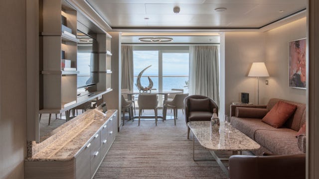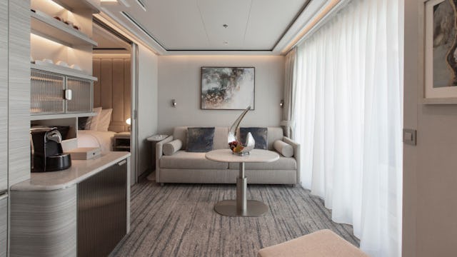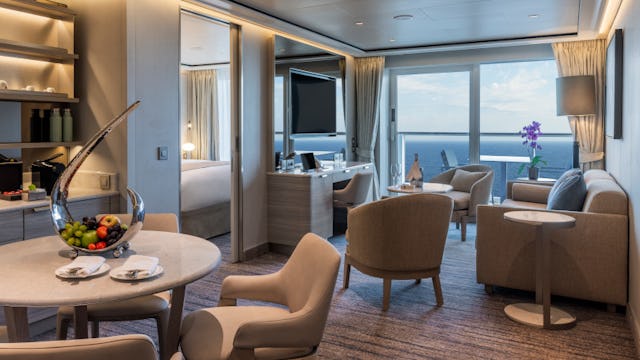 Die Silver, Signature und Master Suiten fühlen sich nicht nur größer an, sie machen das Wohnen an Bord zu einer wahren Freude. Ihr Wohnbereich lädt mit Sofa, Sesseln und einem Esstisch für zwei bis vier Personen zum Verweilen ein, während das luxuriöse Badezimmer mit Whirlpool-Badewanne einen Hauch von Spa-Gefühl in Ihre Suite bringt. Die Silver Suite überzeugt mit 63 m² Gesamtfläche, davon 11 m² Veranda, und einem unverbauten Meerblick aus beiden Zimmern. Die neue Signature Suite bietet mit 65 m² inkl. 16 m² Veranda noch mehr Freiraum, insbesondere auf der Veranda. Und dann ist da noch die neue Master Suite, die mit ihrer Ecklage und 270-Grad-Blick ganz neue Maßstäbe setzt: Mit bis zu 77 m² (inkl. einer Veranda von bis zu 31 m²) erleben Sie ein Panorama, das jede Destination in ein Postkartenmotiv verwandelt.