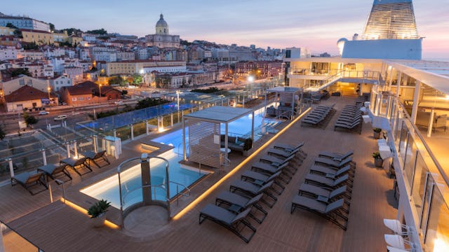 Genießen Sie den Blick auf den Ozean und entspannen Sie sich auf den Liegestühlen auf dem Deck oder lassen Sie sich im Zagara Beauty Spa behandeln.