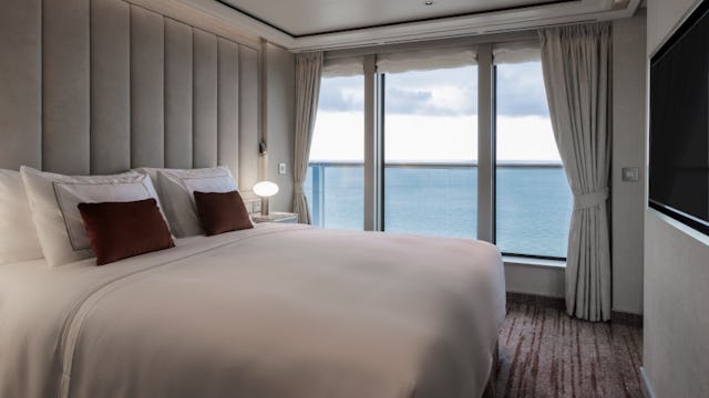 Auf der Silver Ray gibt es zudem Suiten, die für den perfekten Ausblick gemacht scheinen: die Junior Grand und Grand Suiten ganz vorn am Bug. Lichtdurchflutet, außergewöhnlich geräumig und mit einer Aussicht, die Ihnen das Gefühl gibt, dem Horizont ganz nah zu sein. Die Junior Grand Suite bietet Ihnen auf 54 bis 58 m² ein stilvolles Refugium mit Weitblick. Auf Wunsch lässt sie sich mit einer angrenzenden Suite kombinieren, für bis zu 91 m² und ein zweites Schlafzimmer. Die Grand Suiten eröffnen hingegen ein ganz neues Gefühl von Großzügigkeit: Je nach Grundriss erwarten Sie hier zwischen 85 m² (mit einem Schlafzimmer) und bis zu 118 m² Wohnfläche bei Nutzung als Zwei-Schlafzimmer-Suite. Hinzu kommen bis zu 18 m² Veranda und ein Ausblick, der jeden Morgen zum Erlebnis macht.