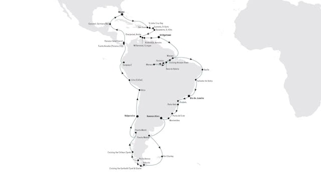 Umrunden Sie einen Kontinent der Extreme – kühn, beeindruckend und voller Aromen. Entdecken Sie antike Städte, durchqueren Sie den Panamakanal und erleben Sie die unvergleichliche Biodiversität sowie die faszinierenden indigenen Kulturen des Amazonas. Begeben Sie sich auf eine Reise von den Schätzen der Karibik bis zu abgelegenen Orten wie Parintins und Boca da Valeria, lassen Sie sich von den Rhythmen des Karnevals von Rio mitreißen und besuchen Sie ikonische Städte wie Buenos Aires, Lima und Valparaíso. Verlängerte Aufenthalte, exklusive Events und kulinarische SALT-Erlebnisse – von Masterclasses zur Zubereitung von Rindfleisch auf Dachterrassen in Argentinien bis hin zu Picknicks auf den Weingütern von Punta del Este – bringen Ihnen jedes einzelne Reiseziel auf persönliche und intensive Weise näher.