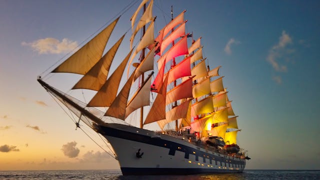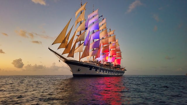 Erleben Sie die schönsten Flecken der Erde an Bord der Royal Clipper, wo die zeitlose Eleganz klassischer Windjammer auf den Komfort moderner Kreuzfahrtschiffe trifft. Die Atmosphäre ist entspannt, die Crew herzlich und aufmerksam – hier genießen Sie stilvolle Gelassenheit, während Sie sich von erstklassiger Kulinarik verwöhnen lassen. Der Fahrplan der Royal Clipper führt Sie zu den schönsten Inseln in der Karibik sowie an luxuriöse Ziele im Mittelmeer wie die Amalfi-Küste, die Côte d’Azur oder die kroatische Adriaküste. Mit einer Passagierzahl von nur 227 Gästen an Bord der Royal Clipper erwartet Sie eine exklusive Atmosphäre. Genießen Sie eine unvergessliche Auszeit von bis zu einer Woche an Bord – oder tauchen Sie auf längeren Reisen wie Ozeanüberquerungen und Panamakanalrouten noch tiefer in die Faszination des Meeres ein.