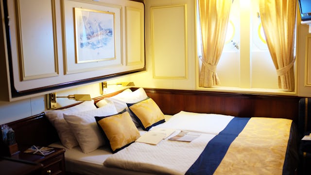 Auf dem Clipper und Commodore Deck befinden sich die Superior-Außenkabinen (Kategorie 2) sowie die Außenkabinen der Kategorien 3 & 4 mit ca. 13 m², die mit einem Doppelbett oder zwei freistehbaren Einzelbetten und Marmorbad mit Dusche ausgestattet sind. Diese Kabinen verfügen über zwei Bullaugen, die den Blick auf die weite See ermöglichen. Weiterhin gibt es auf dem Commodore Deck Kabinen der Kategorien 5 und 6, von denen Kategorie 5 eine Außenkabine mit 11 m² und Kategorie 6 eine Innenkabine mit 10 m² darstellt. Besonders praktisch: Es gibt auch eine Einzelkabine an Bord der Royal Clipper – ideal für Alleinreisende.