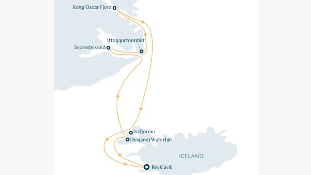 Segeln Sie ab Reykjavík auf der eleganten SH Vega und erleben Sie in nur 11 Tagen die atemberaubende Fjordwildnis von Scoresbysund – dem größten Fjordsystem der Welt – mit panoramischen Gletschern, treuen Muskoxen und tosenden Wasserfällen am König-Oskar-Fjord.