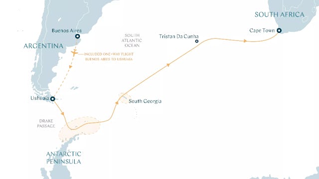 Bestaunen Sie faszinierende Gletscher und majestätische Eisberge, während Sie von Ushuaia in die eisige Wildnis der Süd-Shetland-Inseln segeln. Tauchen Sie ein in die herrlichen Landschaften der Antarktischen Halbinsel. Begegnen Sie nistenden Adeliepinguinen und Flaumschneesturmvögeln. Erkunden Sie die atemberaubende Landschaft von Südgeorgien, der Heimat der größten Makkaroni-Pinguinpopulation der Welt. Beobachten Sie dann einige der seltensten Tiere der Welt auf den Vulkaninseln Tristan da Cunha. Beenden Sie Ihre epische Reise in Südafrikas Hauptstadt Kapstadt mit dem Wissen, dass Sie Erinnerungen geschaffen haben, die Sie ein Leben lang in Ehren halten werden.