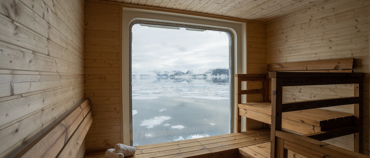 Ein Saunagang empfiehlt sich direkt nach dem Polar-Plunge und bietet einen tollen Ausblick.