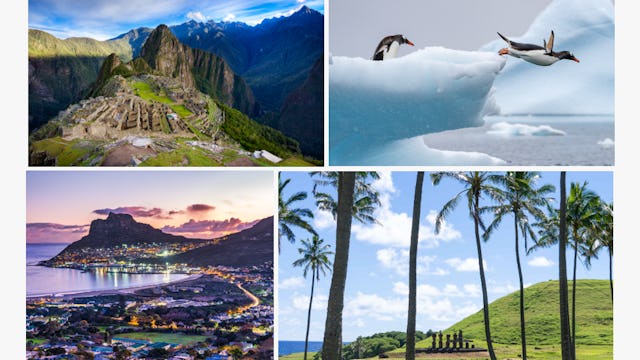 Begleiten Sie die Seabourn Quest auf ihrer Reise über 26.000 Meilen durch fünf Kontinente, auf der Sie kulturelle Geheimtipps und faszinierende Expeditionserlebnisse abseits der ausgetretenen Pfade erwarten. Genau wie die allererste Reise von Seabourn vor 40 Jahren beginnt auch diese Reise mit der Durchfahrt durch die historischen Schleusen des Panamakanals. Von dort aus führt Sie Seabourn zu den bemerkenswertesten Orten der Welt, von der Osterinsel und der Antarktis bis nach Kapstadt und darüber hinaus.