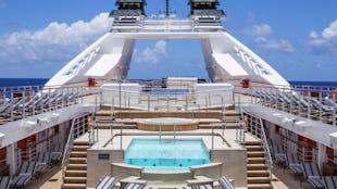 Genießen Sie die Wassersportplattform, den Pool, die Bibliothek, das Spa und das Fitnesscenter an Bord.